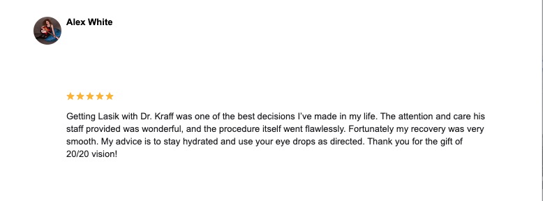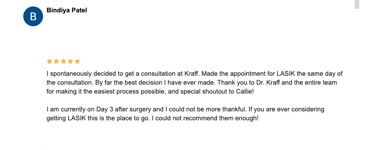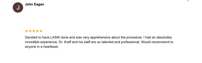 Kraff Eye Institute has earned hundreds of positive reviews from previous patients on all the major review sites, including Google, Facebook, and Yelp.